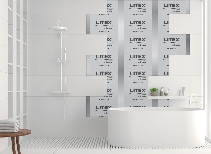 Litex membranduksystem gir en rask og enkel montering på vegg og gulv som et komplett system.